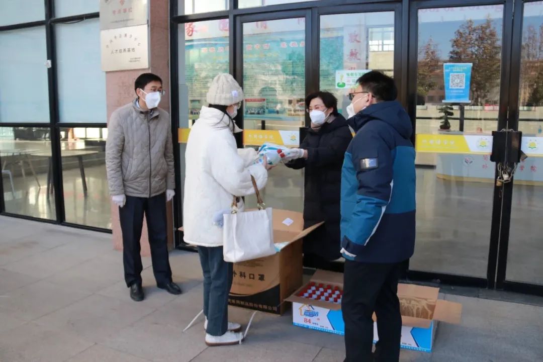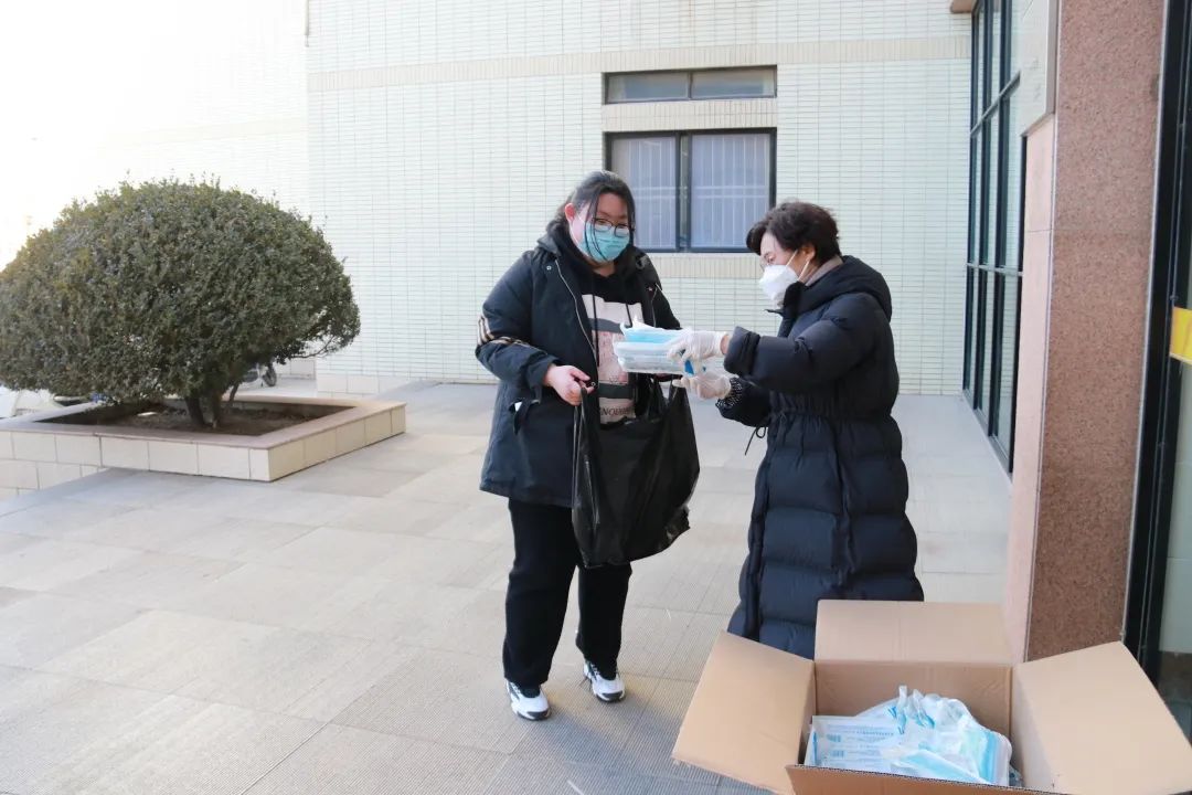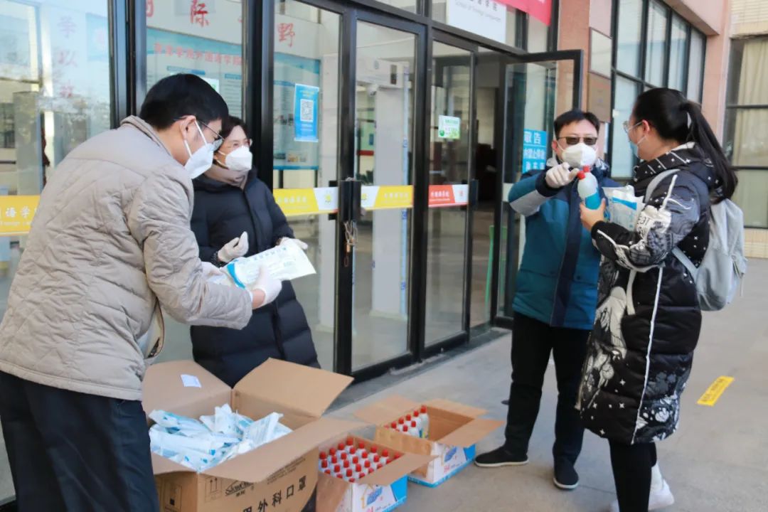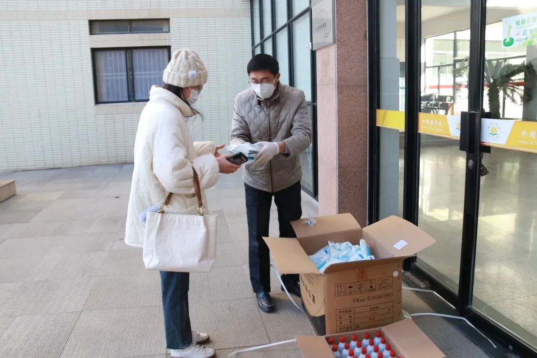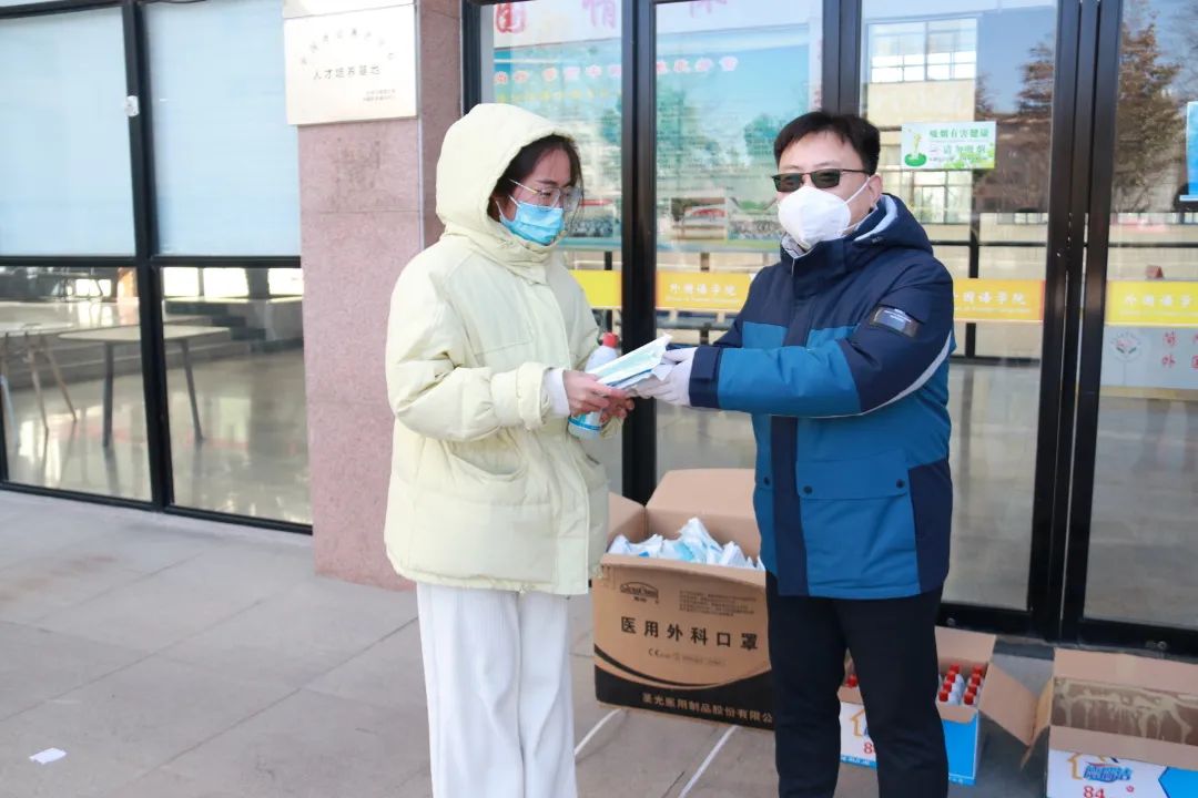 张丽竞、李莉也为同学们送上防疫物资,提醒同学们要提高疫情防控意识,严格遵循学校疫情防控的要求。