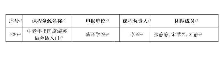 2023年1月,山东省教育厅公示了2022年度山东省社区教育优秀课程资源遴选结果,由我院李莉老师主持的《中老年出国旅游英语会话入门》课程成功入选。