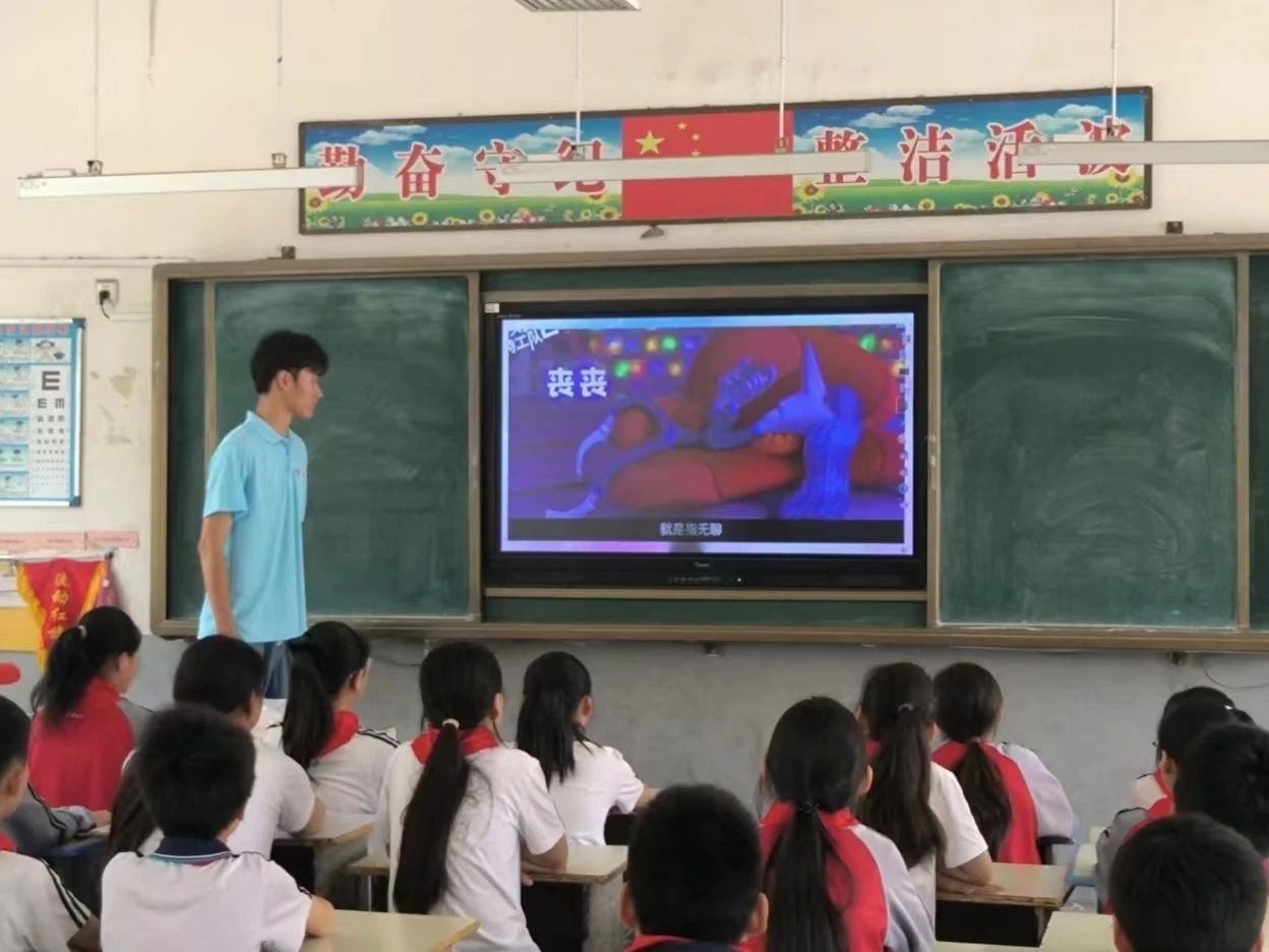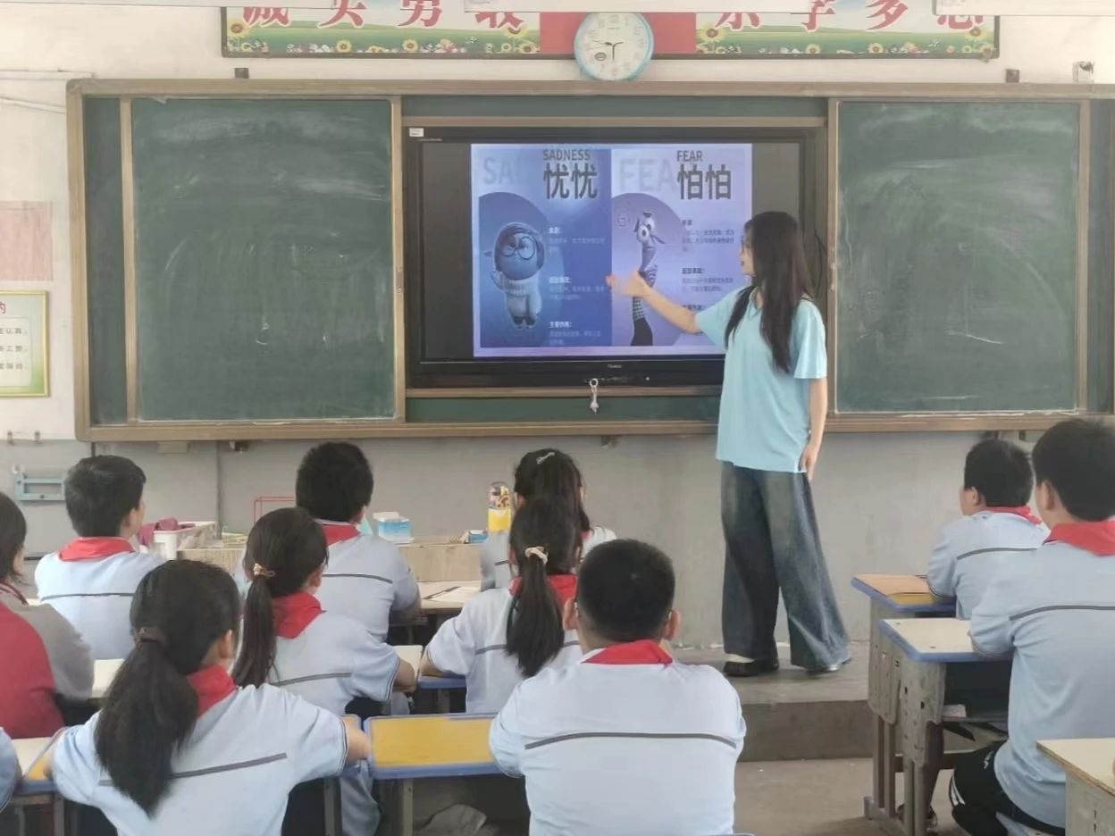 第一堂课,团队成员们为小学生们讲授心理健康知识。志愿者首先以破冰游戏开场,向小学生们进行了自我介绍,调动了课堂氛围。随后,志愿者以电影《头脑特工队》为背景,介绍了头脑中的九种情绪,并且运用专业英语知识介绍了九种情绪的英语表达和作用。电影中的情节和角色行为让孩子们清楚直观地感受到了各种情绪存在的意义和价值,明白了情绪并无好坏之分,他们都是保护我们身心健康的特工,以及如何适当地表达和调节情绪,勇敢做情绪的主人,勇敢做自己。通过和同学们的积极互动交流,不仅使同学们深入了解了自己的情绪,还让同学们懂得无论是在学习还是生活中都要更好地保护自己,珍惜当下。