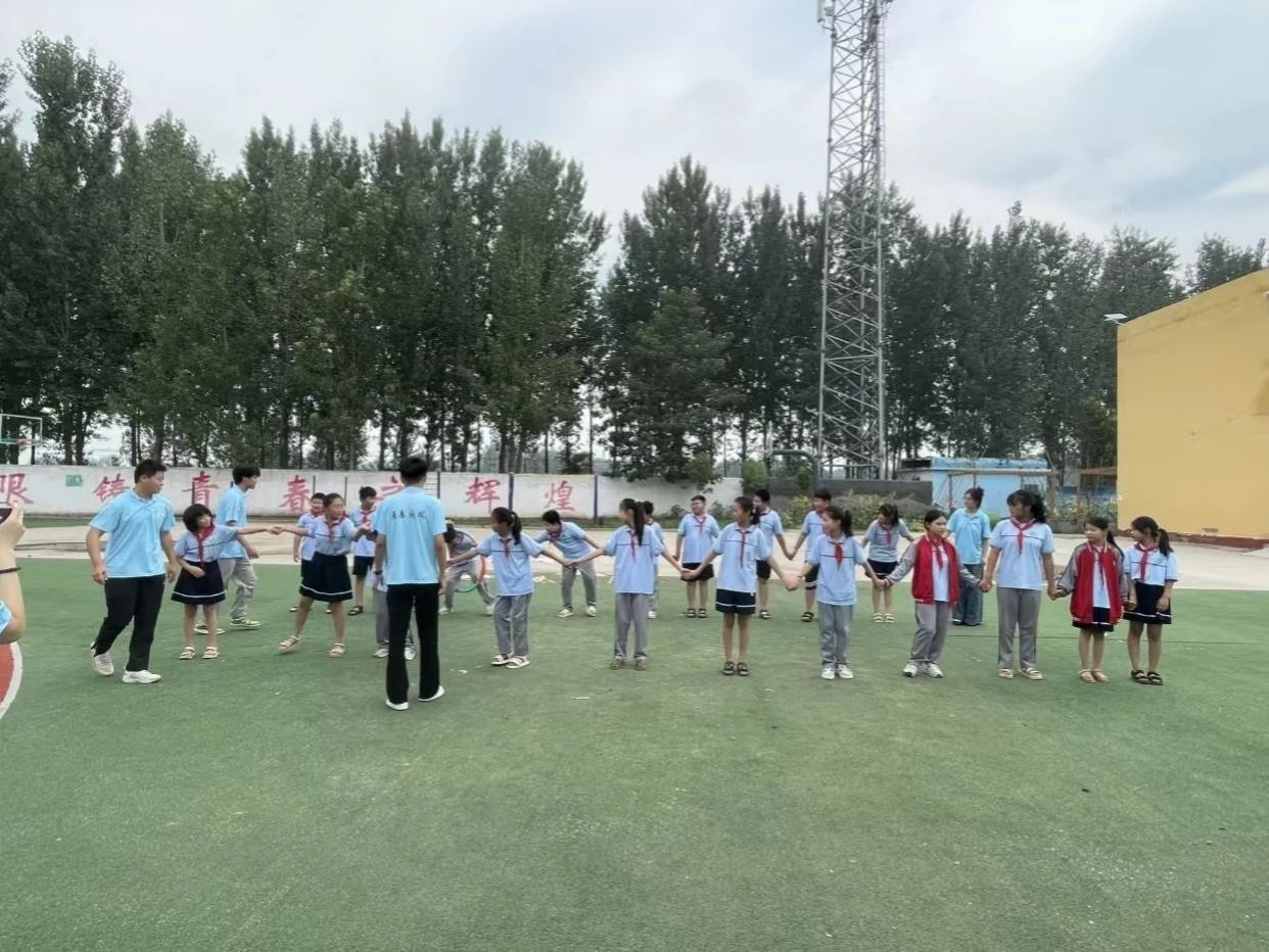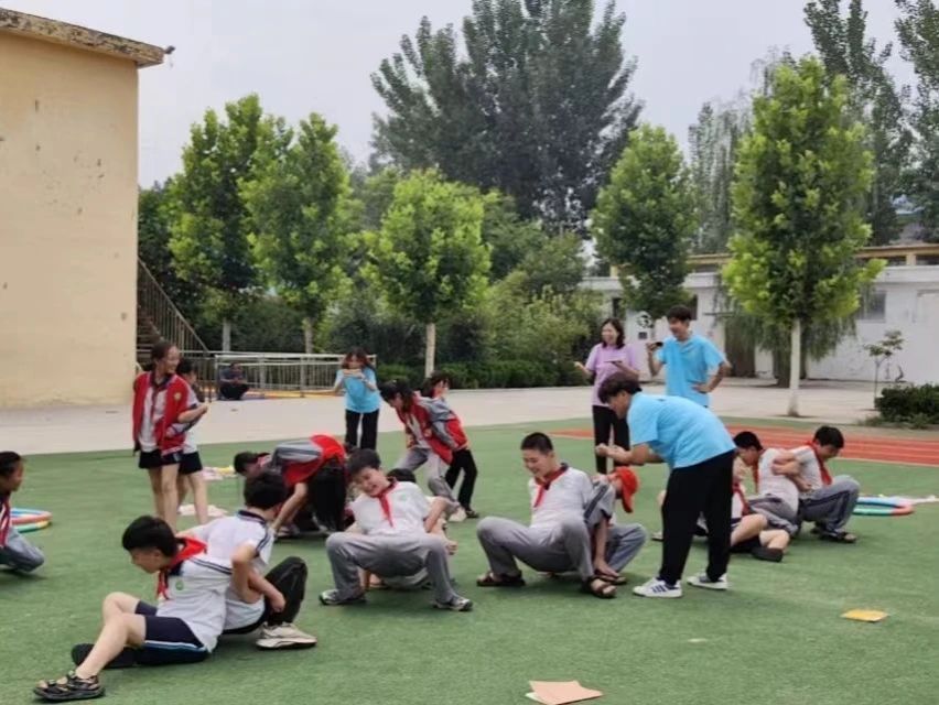 第二天的课程,志愿者们带领小同学们走出教室,来到户外开展心理健康团体辅导。志愿者们结合小学生的心理发展规律,通过小游戏的形式开展活动。游戏过程中,志愿者们耐心引导,让孩子们在轻松愉快的氛围中,学会团队合作,建立自信。“穿针引线”游戏中,志愿者们带领学生们分组、热身、比赛,大家手牵手,按要求走位,通过呼啦圈完成任务。在“坐地起身”游戏中,孩子们背靠背,双臂交叉,合力站起来,大家心连心,朝着一个共同的目标努力。在轻松欢乐的活动中,每个人脸上都洋溢着笑容。同学们在游戏中增进了友谊,拉近了彼此心与心的距离。