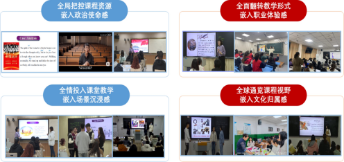 思政育人(I):将党建工作融入人才培养,着力培养学生的家国情怀和国际视野。通过构建“四全嵌入”课程思政创新模式,将政治使命感、职业体验感、场景沉浸感和文化归属感融入课堂教学。