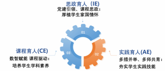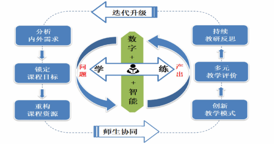 课程育人(C):构建了“双核、双导、双翼、六循环”的课程建设模式,以学生学、练为核心,以问题和产出为导向,着力提升学生的学科素养。