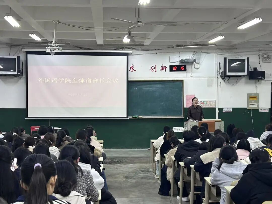 会议伊始,朱叶遥围绕宿舍用电政策展开讲解,并从消防安全、用电安全、心理健康、防盗防骗四个维度,系统阐述了各类安全隐患的识别要点与预防措施,帮助宿舍长全面深化对宿舍安全的认知。她强调,宿舍长作为宿舍管理的 “第一责任人”,其角色至关重要、责任不可推卸,希望各位宿舍长能以身作则,带动宿舍成员共同遵守安全规定,携手打造安全、健康、和谐的宿舍氛围。